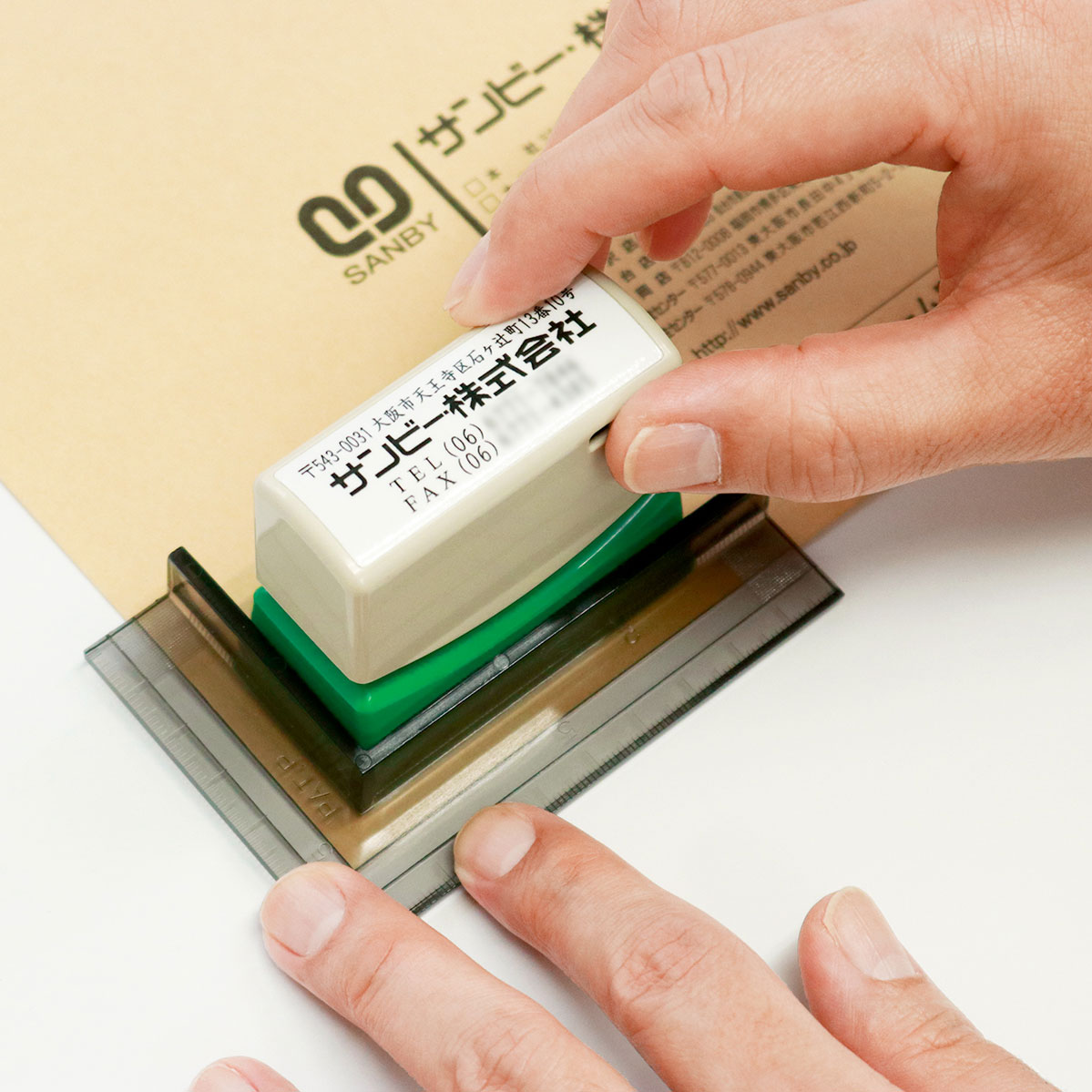 スタンプを定規に合わせて押すだけで、狙った場所にまっすぐ押すことができるはんこ・スタンプ補助アイテムです。会社印、会社事務での小切手や手形、封筒や個人でのはがき・年賀状など各種スタンプ、スケジュール帳・ノート・付箋にもおススメです。