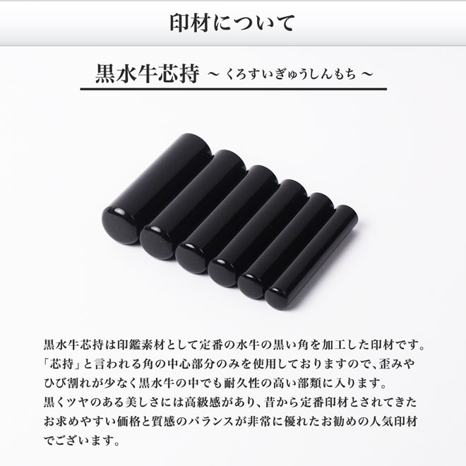 | 商品名称 | 法人印鑑/代表者印/会社印/認め印/役職者印 黒水牛芯持/丸寸胴アタリ無し/21mm/ケース別売 |