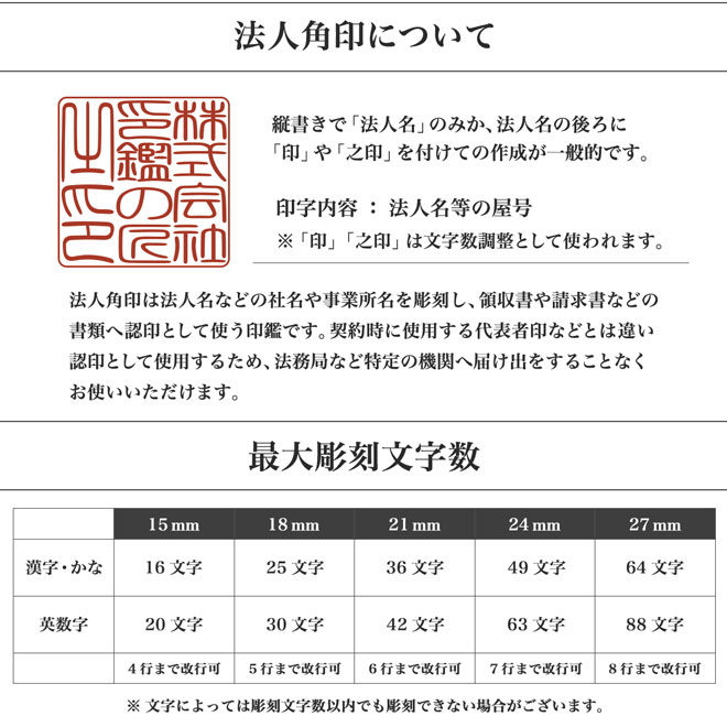| 商品名称 | 法人印鑑/角印/匠の完全手彫り印鑑/彩樺/角天丸/24mm/ケース別売 |