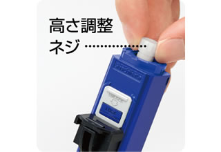 | セットはお手持ちの印鑑を差し込むだけで印鑑が連続印に早変わり | 高さ調節ネジを使えばセット後に高さの調節ができます。 |