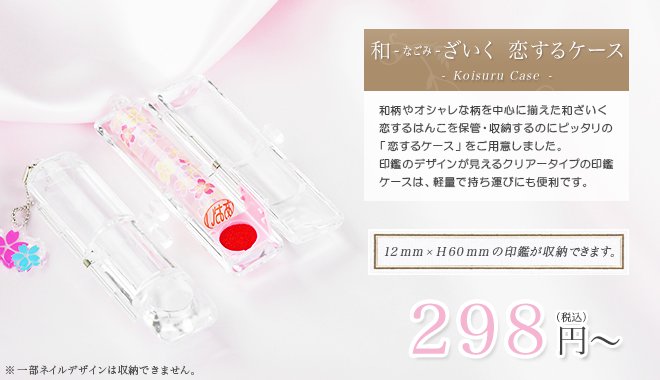 ※恋するはんこのネイルデザインタイプの印鑑は「恋するケース」に収納することができません。 印鑑ケースがご入用の場合はお手数をおかけしますが「恋するケース」以外の印鑑ケースをお選びください。 |
