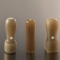 ご印鑑の素材として定番の水牛の黒い角を加工した印材です。弊社では芯持と言われる角の中心部分のみを使用しておりますので歪みやひび割れが少なく粘りがあり耐久性の高い高級印材でございます。
