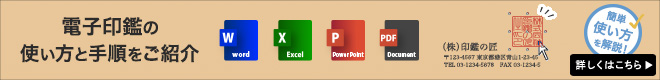 電子印鑑は現物の印鑑とは異なり、印影の画像データのことです。実物の印鑑同様、オリジナルにデザインした印影画像データを作成し、電子書籍書類に捺印します。