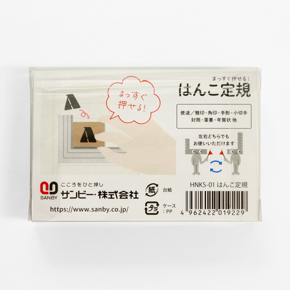 スタンプを定規に合わせて押すだけで、狙った場所にまっすぐ押すことができるはんこ・スタンプ補助アイテムです。会社印、会社事務での小切手や手形、封筒や個人でのはがき・年賀状など各種スタンプ、スケジュール帳・ノート・付箋にもおススメです。
