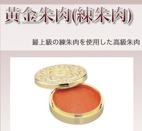 トップページ > 朱肉・印泥一覧 > 黄金朱肉(練朱肉) 重厚感のある金属製の容器にゴールド調の加工を施した、本物の練り朱肉を入れた高級朱肉です。 柔軟性・弾力性に優れた最上級の本格練朱肉を使用しています。 従って一般の朱肉と比較して印面への着肉性能が高く、鮮明な色調の印影となります。 贈答品や記念品などプレゼントにお勧めです。 *** 丸印最大のサイズ 角印最大のサイズ その他 黄金朱肉(練朱肉) 朱肉直径53mm ¥3,675(税込) 販売終了 *** *** ***