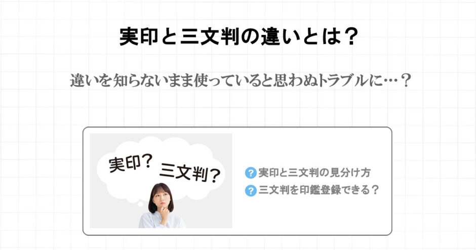 そこで、この記事は「実印と三文判の違いとは?」をテーマに解説します。