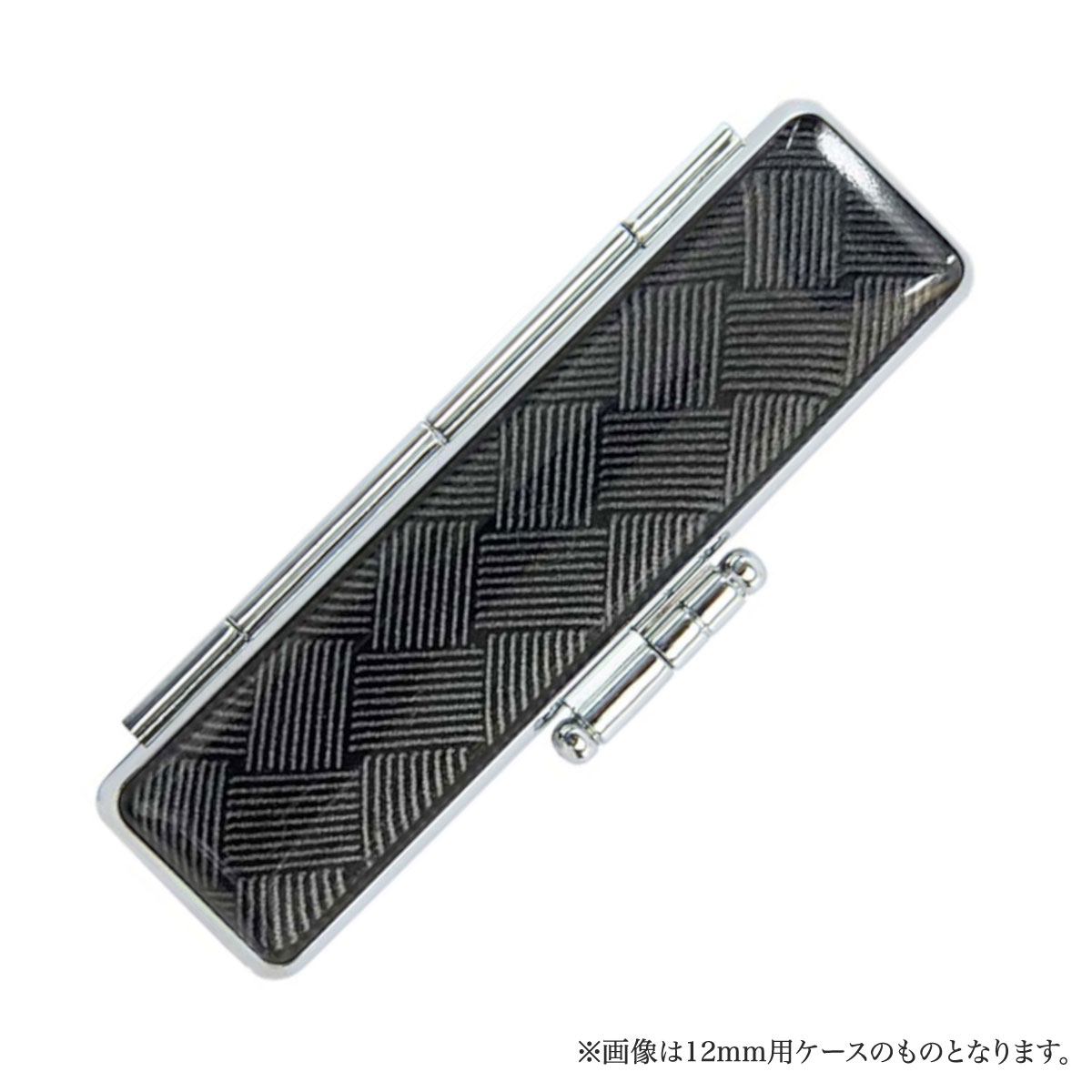 プラスチック製のフレームと樹脂製のボディの印鑑ケースです。携帯に便利な軽量さを実現しながらも、高級感のあるメッキ加工と落ち着いた大人らしいデザインでリッチさを失わない仕上がりです。