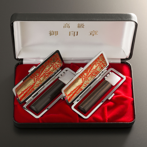 | 商品名称 | 個人印鑑黒檀2本コンパクトセット(もみ革ケース) アタリ有無選択可 |