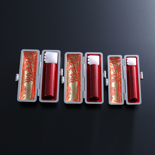 個人印鑑赤耀樺3本ラグゼセット(もみ革ケース) アタリ有無選択可