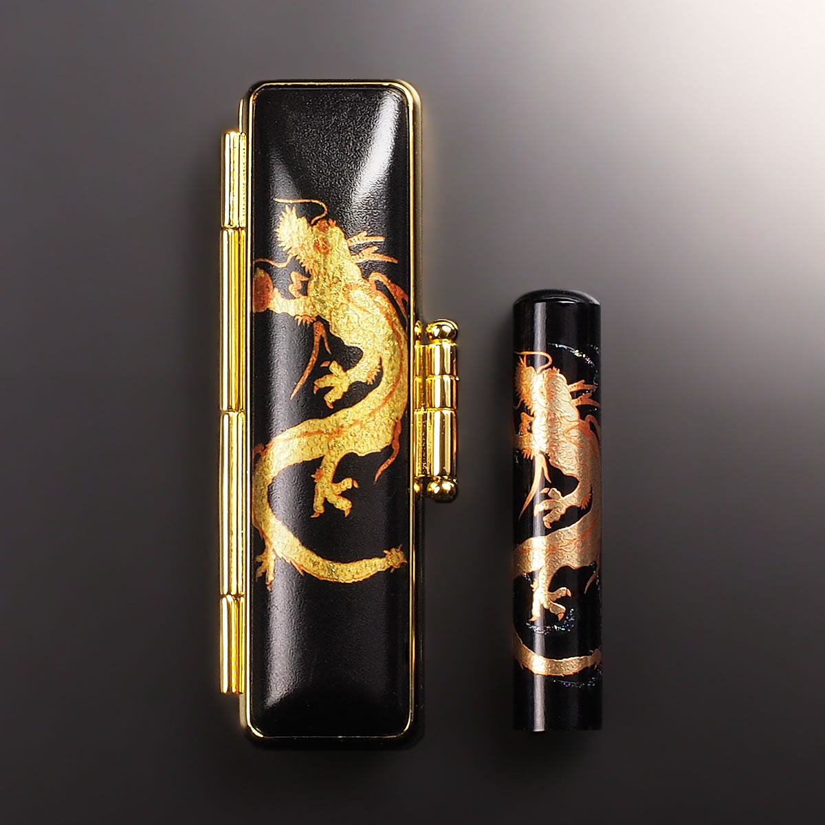 黒水牛現代蒔絵の黒水牛蒔絵個人印鑑セット/開運(龍)/金昇龍/銀ラメ/黒水牛蒔絵個人印鑑(12mm)、現代蒔絵ケース(金昇龍・銀ラメ)
