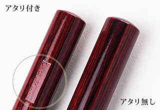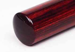 | 印鑑の上側を示す「アタリ」を無料でお付けできます。 | 燃えるような赤色の美しい木目が特徴的な印材です。 |