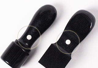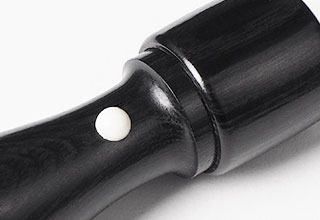 | 印鑑の上側を示す「アタリ」がついています。 | 黒彩樺は天然木に劣らない黒く美しい木目が特徴的です。 |