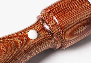 限りある木材資源を保護するため、木材と樹脂を利用して作られたエコ印材です。真樺(パーチ剤)と樹脂を高圧加熱処理することにより、きめ細かく硬い材質に仕上げています。木目も美しく、木の味わいをしっかりと持っています。