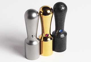 | 印鑑の上側を示すクリスタルやチタン球をお選びいただけます。 | ブラストチタンはつや消し加工のため、指紋なども付きにくいのが特徴です。 |