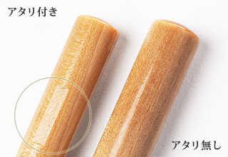 | 印鑑の上側を示す「アタリ」を無料でお付けできます。 | 美しい虎目調の木目が特徴の耐久性の高い印材です。 |