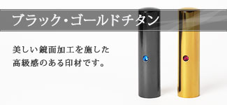 ブラック・ゴールドチタンは鏡面加工を施し、他の印材には無い光沢感を実現した印材です。ブラックとゴールド2色のカラーがあり、高級感のある仕上がりとなっています。