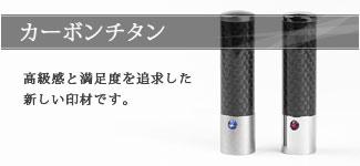 カーボンチタンはチタン印材にカーボン素材を組み合わせた印材です。カーボン部分は眺める角度によって表情を変え、高級感とスタイリッシュさを演出します。チタン部分とカーボン部分を分解組み立てできるため、メンテナンスも容易です。