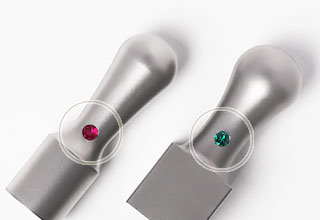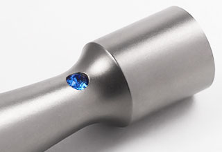 | クリスタルアタリ付きタイプのチタン印鑑です。 | 手触りの良いツヤ消し加工のブラストチタン印鑑。 |