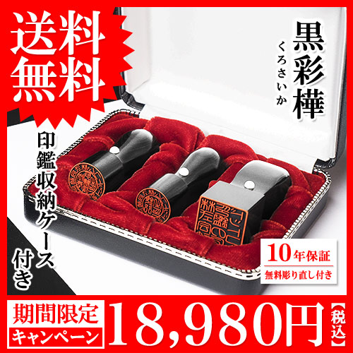 【キャンペーン】法人印鑑/黒彩樺コンパクトセット/代表者印(丸天丸18mm):銀行印(丸天丸16.5mm):角印(角天丸21mm):セットケース3本用