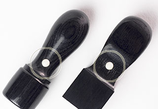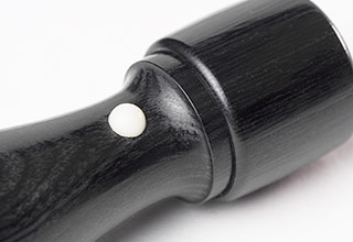 | 印鑑の上側を示す「アタリ」がついています。 | 黒彩樺は天然木に劣らない美しい木目が特徴的です。 |