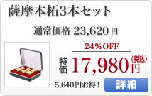 【キャンペーン】法人印鑑/薩摩本柘コンパクトセット/代表者印(丸天丸18mm):銀行印(丸天丸16.5mm):角印(角天丸21mm):セットケース3本用