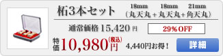 代表者印・会社印・薩摩本柘・丸天丸・18mm x 1 銀行印・薩摩本柘・丸天丸・16.5mm x 1 角印・薩摩本柘・角天丸・21mm x 1 ご印鑑3本収納ケース[天丸or寸胴・3本用]・ハンディケース・18mmまで1本・21mmまで1本・24mmまで1本 x 1 or ご印鑑3本収納ケース[天丸or寸胴・3本用]・クラッシーケース・18mmまで1本・21mmまで1本・24mmまで1本 x 1 |
