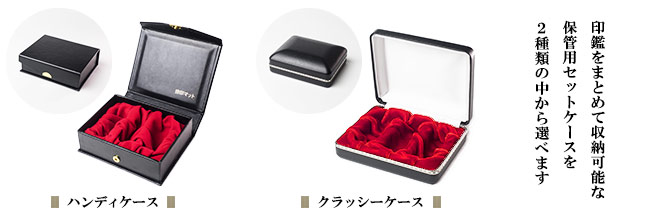 ご印鑑3本収納ケースは「ハンディケース」と「クラッシーケース」の2種類からお選びいただけます。