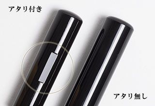| 印鑑の上側を示す「アタリ」を無料でお付けできます。 | 黒水牛は本物の風格が漂う高級感のある印材です。 |